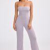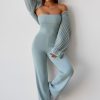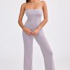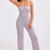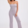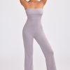 Sleek Essentials, Reimagined. A sleek wardrobe essential that can be worn on its own or layered with separates from the collection for a coordinated look, this jumpsuit is spun from our premium chunky-knit stretch fabric. It’s cut to a body-contouring fit with a foldover bandeau neckline and falls to a flattering kick flare trouser.