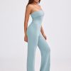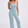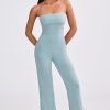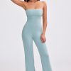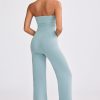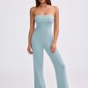 Sleek Essentials, Reimagined. A sleek wardrobe essential that can be worn on its own or layered with separates from the collection for a coordinated look, this jumpsuit is spun from our premium chunky-knit stretch fabric. It’s cut to a body-contouring fit with a foldover bandeau neckline and falls to a flattering kick flare trouser.