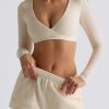 Unwind and look good doing it. Perfect for styling on laid-back days, this top is crafted from our luxe, double-brushed jersey that’s irresistably soft, breathable, and designed with a touch of stretch for maximum comfort. It’s cut to a clean, cropped silhouette with a wrap neckline and a non-restrictive yet supportive elasticated hem tagged with a tonal Bo+Tee logo.