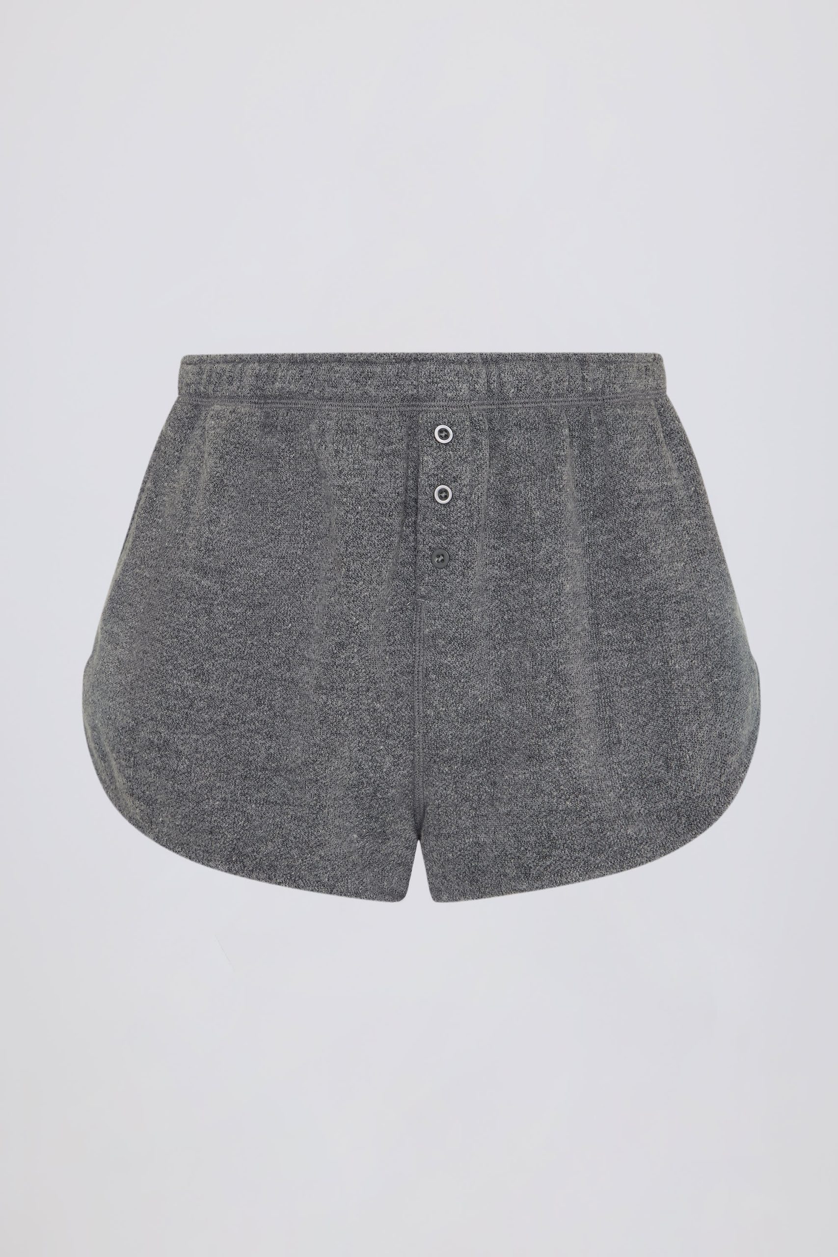 Button-Detail Mid-Rise Shorts in Dark Grey