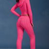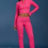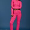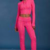 Cable-Knit Flared Trousers in Hot Pink