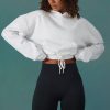 Cropped Drawstring Hooded Sweatshirt in Ice Grey