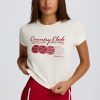 Catch us courtside. Ideal for styling from the country club to coffee dates, this T-shirt is crafted from premium cotton jersey with a breathable, soft-touch feel. It’s cut to a slightly cropped silhouette with a classic crew neckline and vintage-inspired logo graphic at the front. Match the colour of the logo to your leggings or shorts.