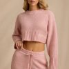 Luxe knits. Our new favourite layering piece, this jumper is spun from super soft, partially recycled knit fabric to a boxy cropped silhouette, tapered with a ribbed collar, cuffs and hem. It’s elevated with dropped shoulders that contribute to a laid-back look and features a signature Bo&Tee logo at the side.