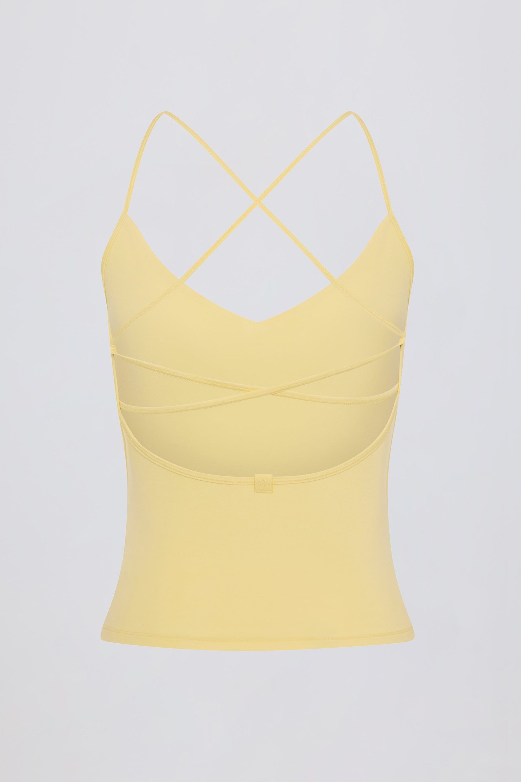 Made to move with you from sunrise flights to sunset yoga. Designed as an effortless styling piece with a twist, this tank top is crafted from our silky smooth and stretchy jersey for a sleek, figure-hugging fit. It’s cut to a V-neck silhouette and features statement strappy cross-back detailing.