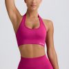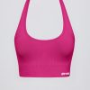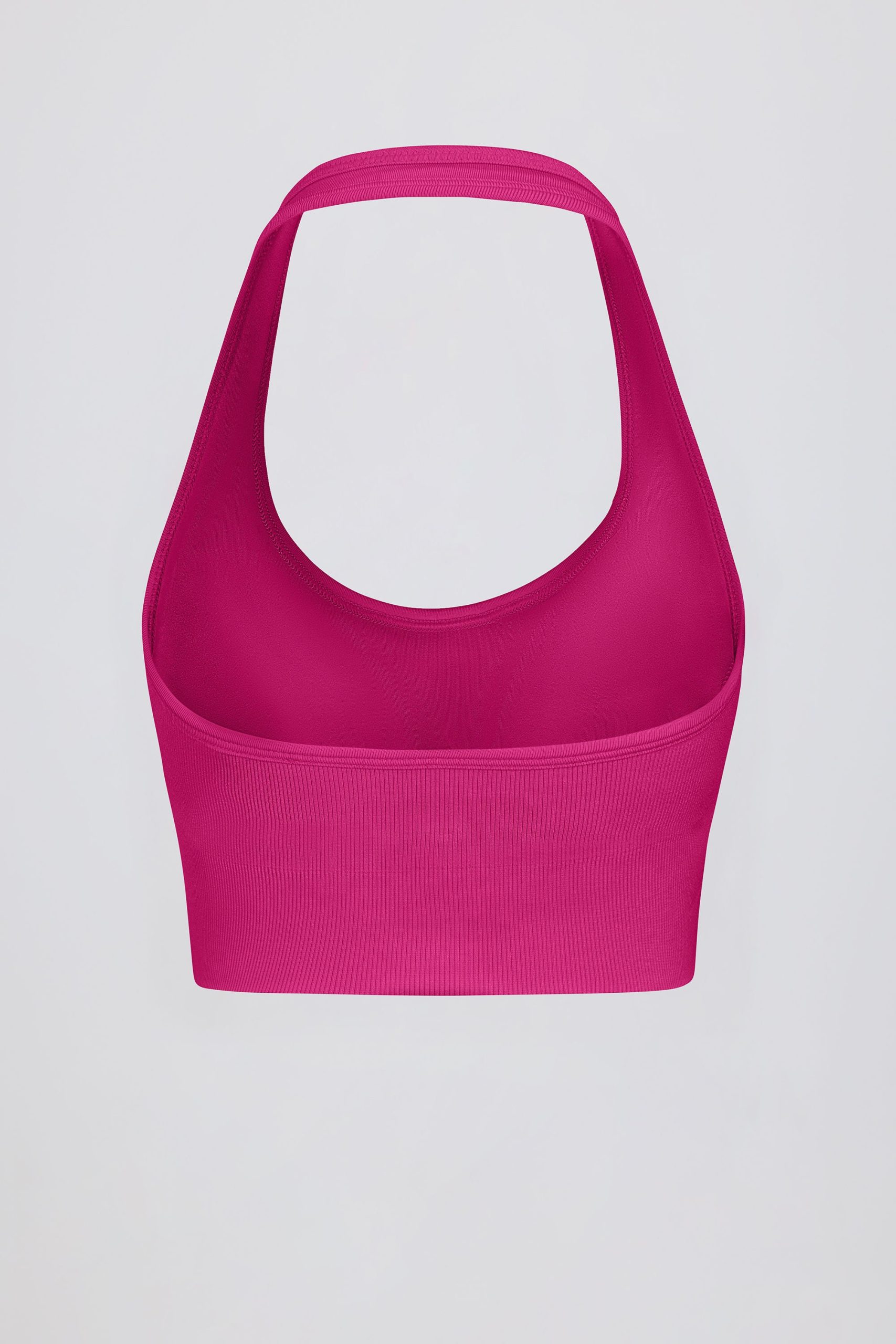 Sculpting, lifting, smoothing. Designed to support you through every workout, this halterneck sports bra is crafted from our custom-developed Define Luxe fabric that’s slinky soft, features enhanced stretch and moisture-wicking properties. Framed with a scoop neckline, it features a supportive wide ribbed underband, removable padding and is designed for medium-impact support.