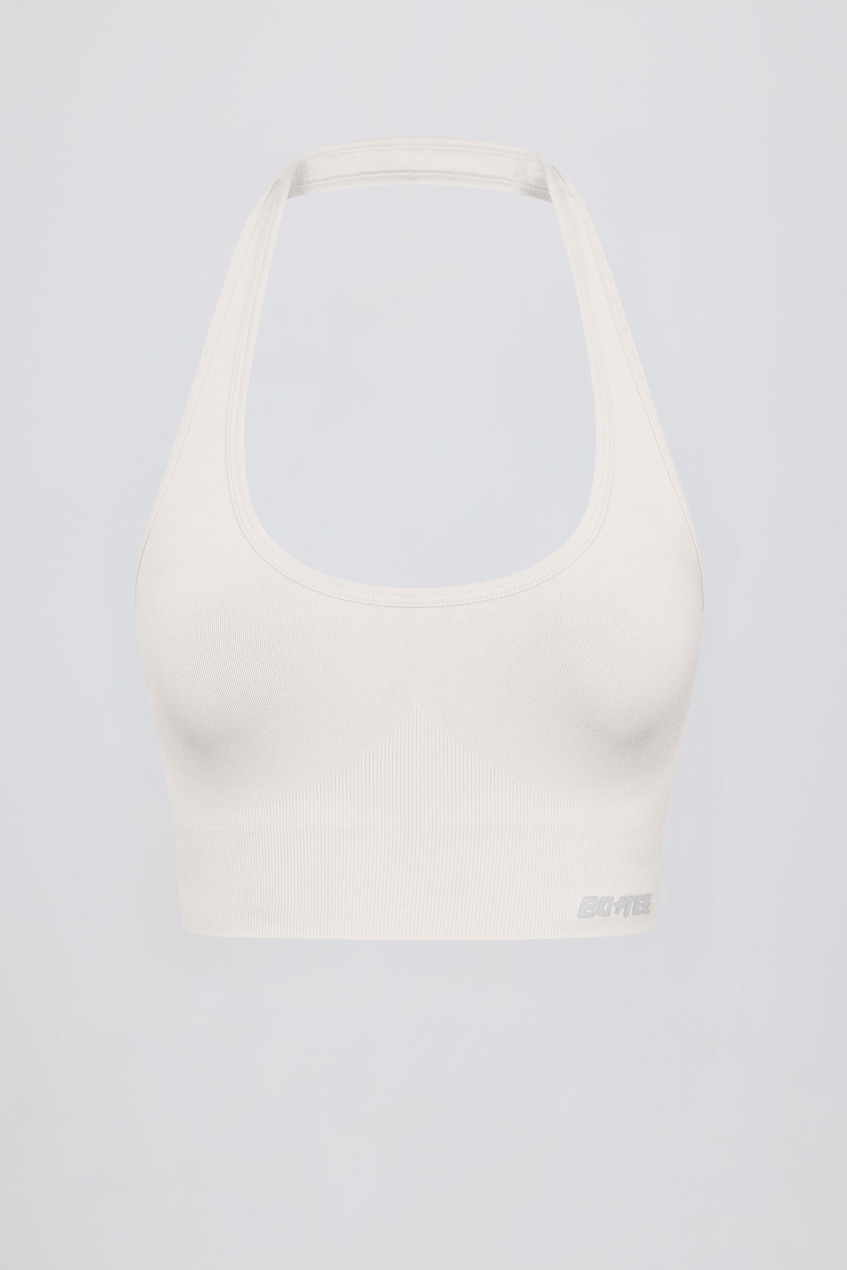 Sculpting, lifting, smoothing. Designed to support you through every workout, this halterneck sports bra is crafted from our custom-developed Define Luxe fabric that’s slinky soft, features enhanced stretch and moisture-wicking properties. Framed with a scoop neckline, it features a supportive wide ribbed underband, removable padding and is designed for medium-impact support.