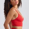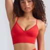 Streamlined support. Silky soft and engineered for performance, this sports bra is crafted from our signature Define Luxe seamless knit fabric with moisture-wicking and breathable properties. It features adjustable straps for a custom fit, as well as contoured cups and a micro-rib elasticated underband for enhanced support and lift.