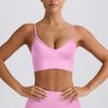 Streamlined support. Silky soft and engineered for performance, this sports bra is crafted from our signature Define Luxe seamless knit fabric with moisture-wicking and breathable properties. It features adjustable straps for a custom fit, as well as contoured cups and a micro-rib elasticated underband for enhanced support and lift.
