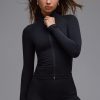 Functional comfort. Made from our breathable, moisture-wicking and lightweight Define Luxe fabric, this jacket is perfect for outdoor activities and running errands. Designed for a second-skin fit, it features underbust contouring and compressive ribbed panels along each side, creating a sculpted look. It has a high collared neckline for extra protection against the elements and a signature Bo&Tee logo at the back.