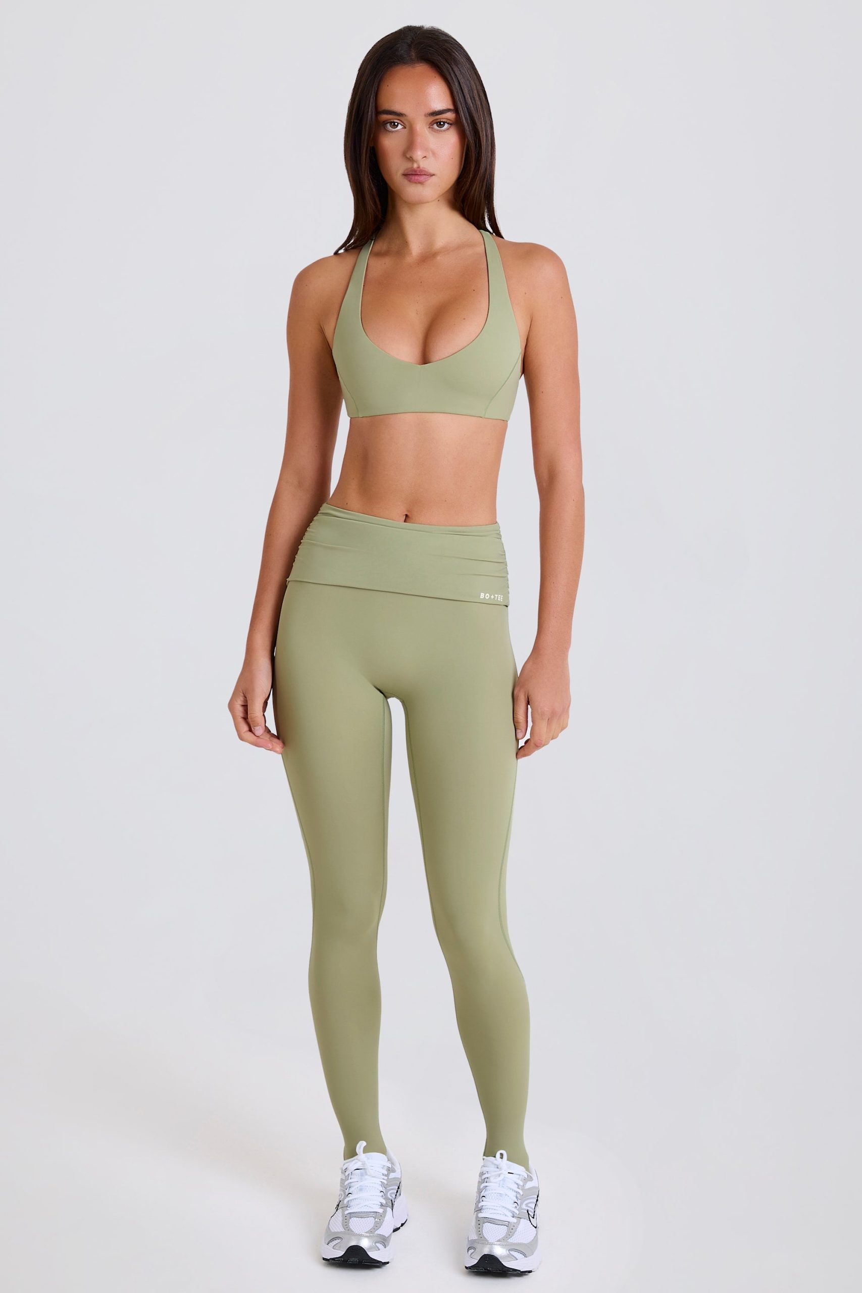 Foldover Mid-Rise Stirrup Leggings in Matcha