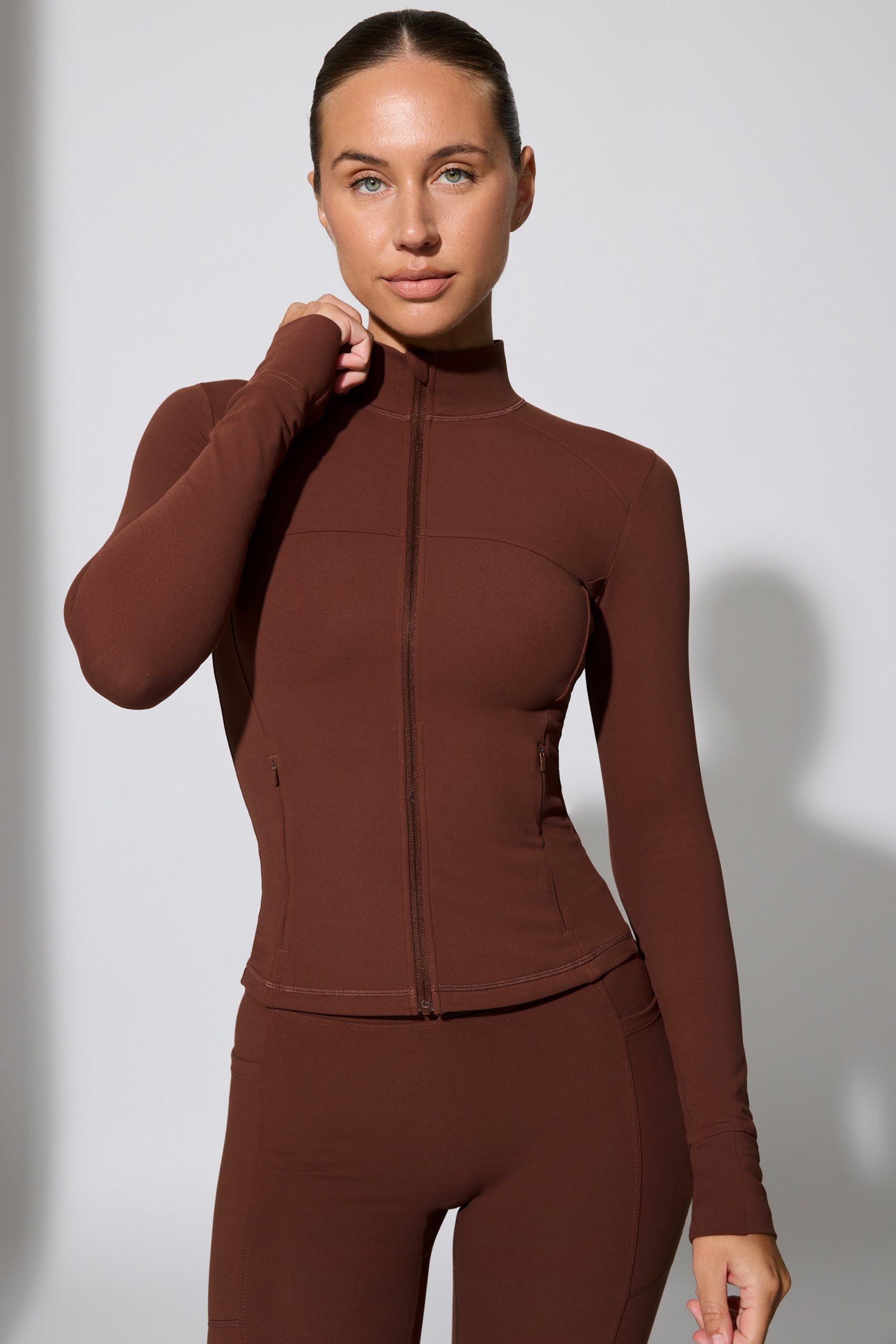 Active essentials. Made from our buttery-smooth Soft Active fabric, the Growing jacket is super soft and stretchy, perfect for exercise, running errands and everything else on your schedule. Cut to the low waist, the Growing jacket is complete with a functional full length zip fastening, side pockets and detailed panelling that sculpts your silhouette.