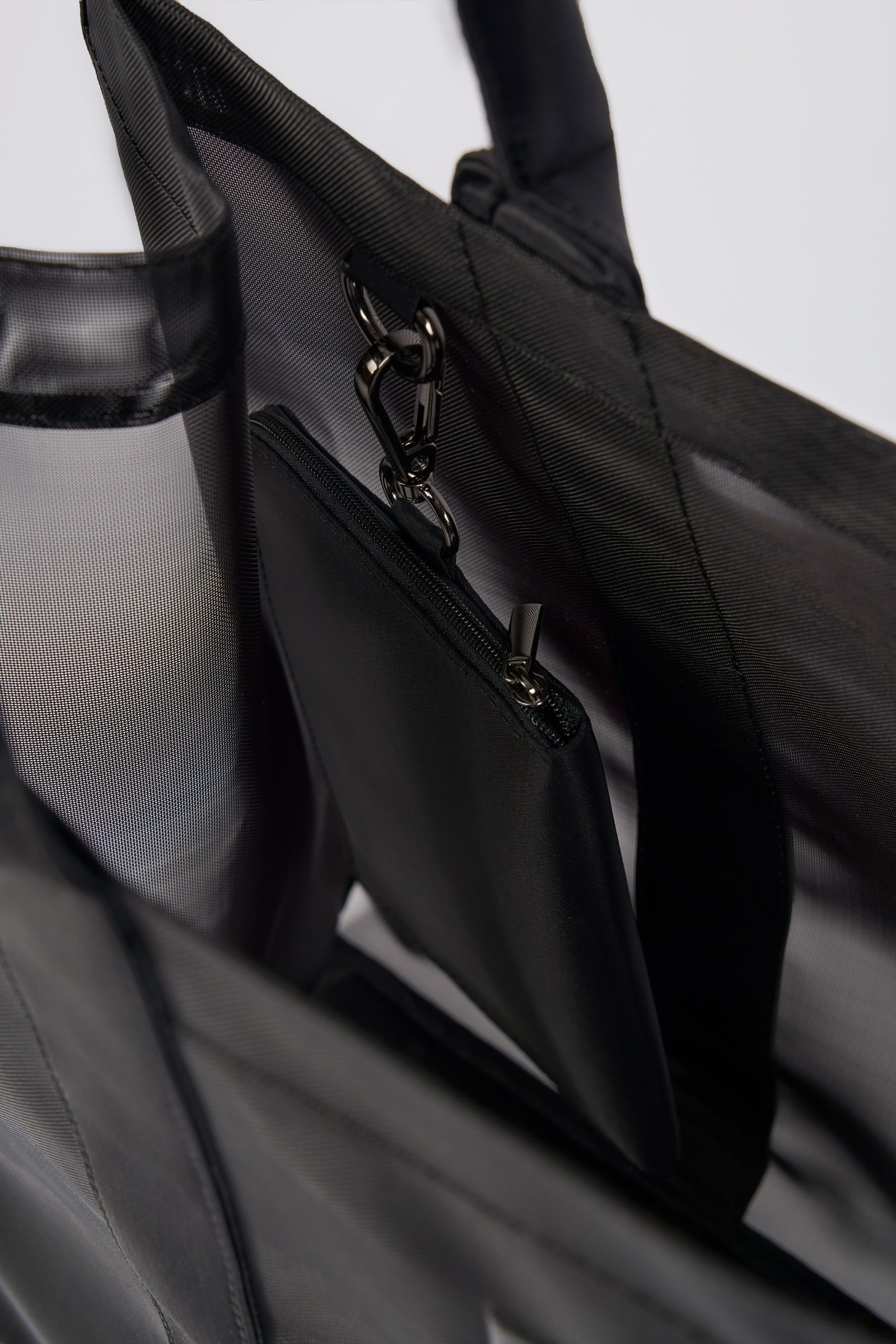 On-the-go essentials. Made for days when you need to carry a little extra, this tote bag is crafted from woven mesh to a boxy, structured silhouette with slender reinforced shoulder straps. It opens to a generously sized interior, complete with a detachable coin purse, and is elevated with a tonal Bo&Tee silicone logo at the front.