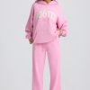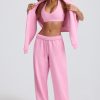Mid-Rise Wide-Leg Joggers in Baby Pink