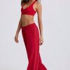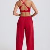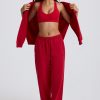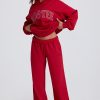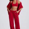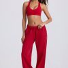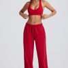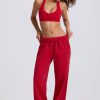 Mid-Rise Wide-Leg Joggers in Hot Red