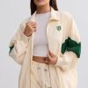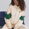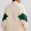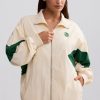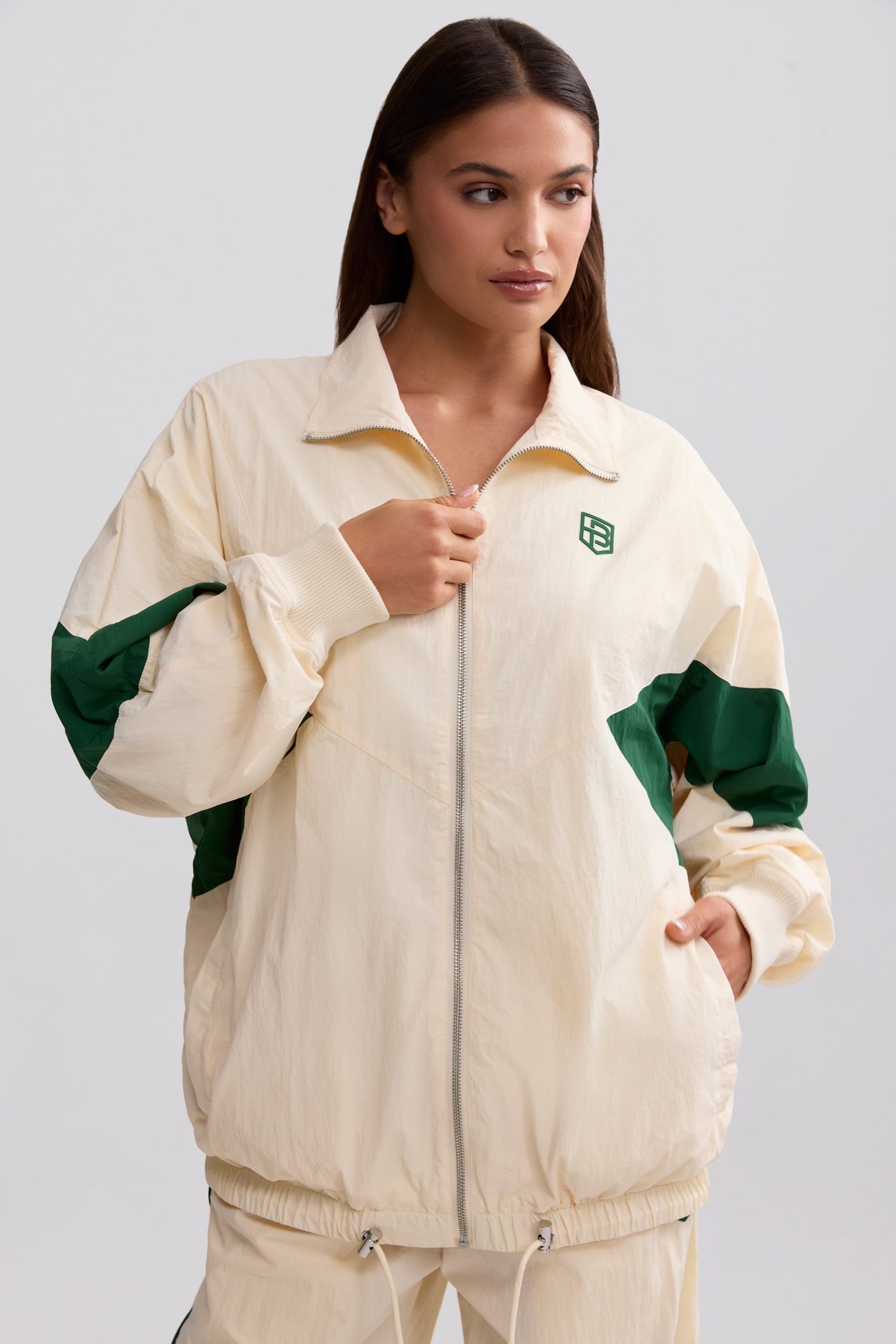 Up your styling game. Inspired by classic coach styles, this track jacket is crafted from lightweight, water-repellent and lightly crinkled nylon fabric, making it ideal for year-round styling. It’s cut to an oversized fit, tempered with an elasticated hem with adjustable drawstrings, and features a stand-up collar, contrasting colourblock panels and a football-inspired crest logo at the chest.