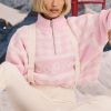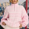 Oversized Half-Zip Chunky-Knit Jumper in Pastel Pink