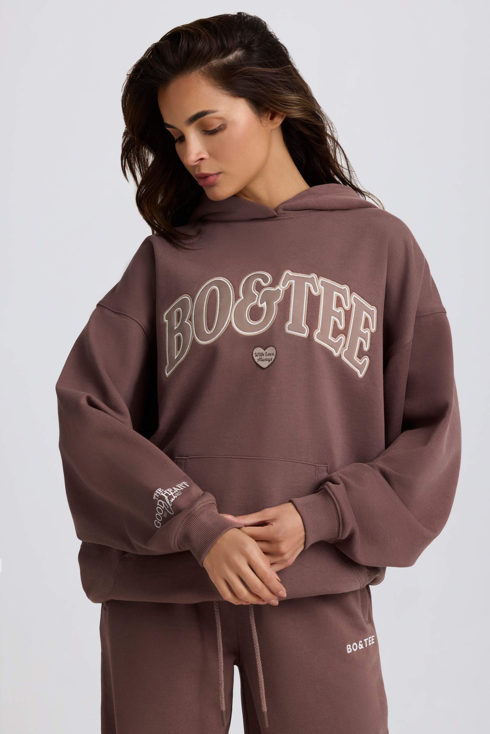 If your love language is cosy everyday staples, you’ll adore this hoodie. Crafted from soft, breathable and lightweight terry-back cotton jersey, it’s cut to a signature oversized silhouette with a fixed hood, kangaroo front pocket and ribbed trims. In keeping with the playful theme of the collection, it features an all-new Bo&Tee logo at the chest, signed off with a cute heart-shaped badge.
