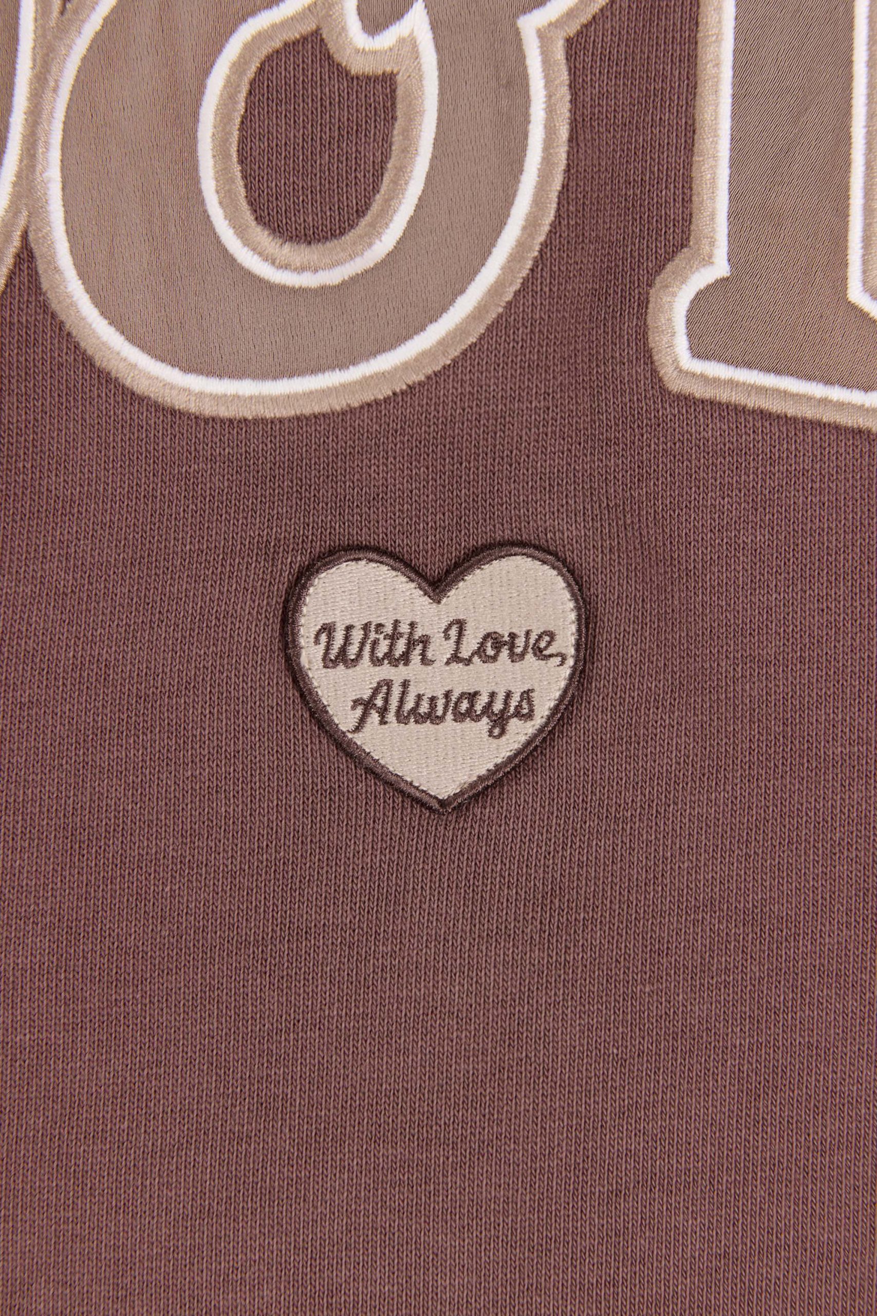 Embroidered slogan at sleeve