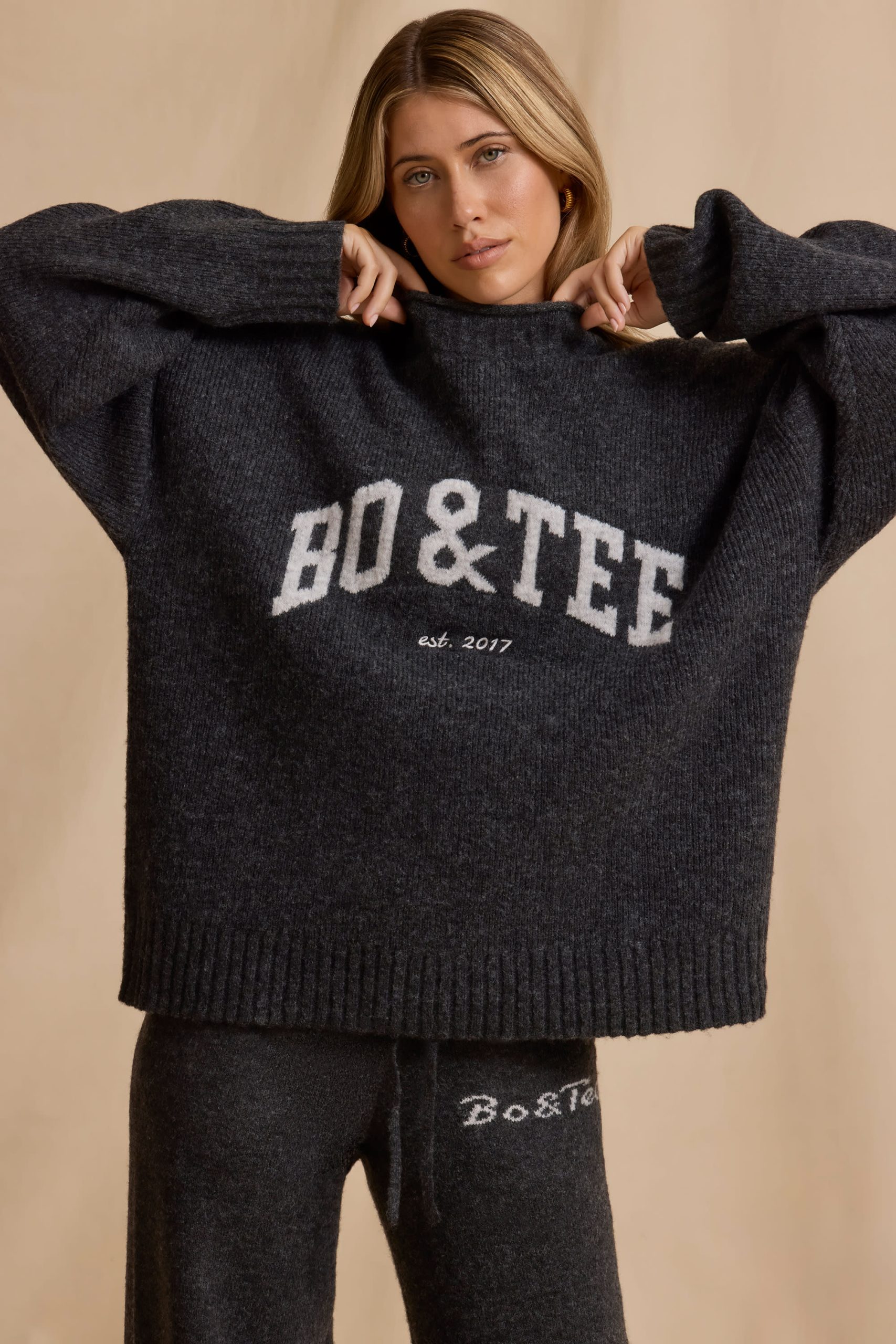 Cosy and comfortable. A piece made for layering on chilly days, this oversized jumper is spun from our super soft ribbed-knit fabric with dropped shoulders that enhance the perfectly oversized look. It’s framed with a rolled-edge high neck for enhanced comfort and is elevated with a knitted Bo&Tee logo at the front.