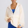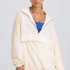 Lightweight coverage. The perfect layer for temperate days, this unlined track jacket is made from crisp woven taffeta that’s lightweight and breathable. Inspired by classic windbreakers, it features a quarter-zip fastening for variable coverage and is cut to an oversized silhouette, tempered by an elasticated hem and sleeves. It’s complete with sporty contrast trims and signature elements, including a woven Bo&Tee badge and a branded zip pull.