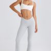Summer staples. Perfect for styling at home or on holiday, these trousers are rendered in two classic neutral hues. They’re crafted from lightweight, textured cotton jersey with a touch of stretch and cut to a universally flattering flared silhouette. The V-shaped elasticated waistband creates a contoured look and the design is finished with a tonal embroidered Bo&Tee logo at the back.
