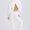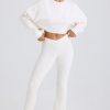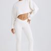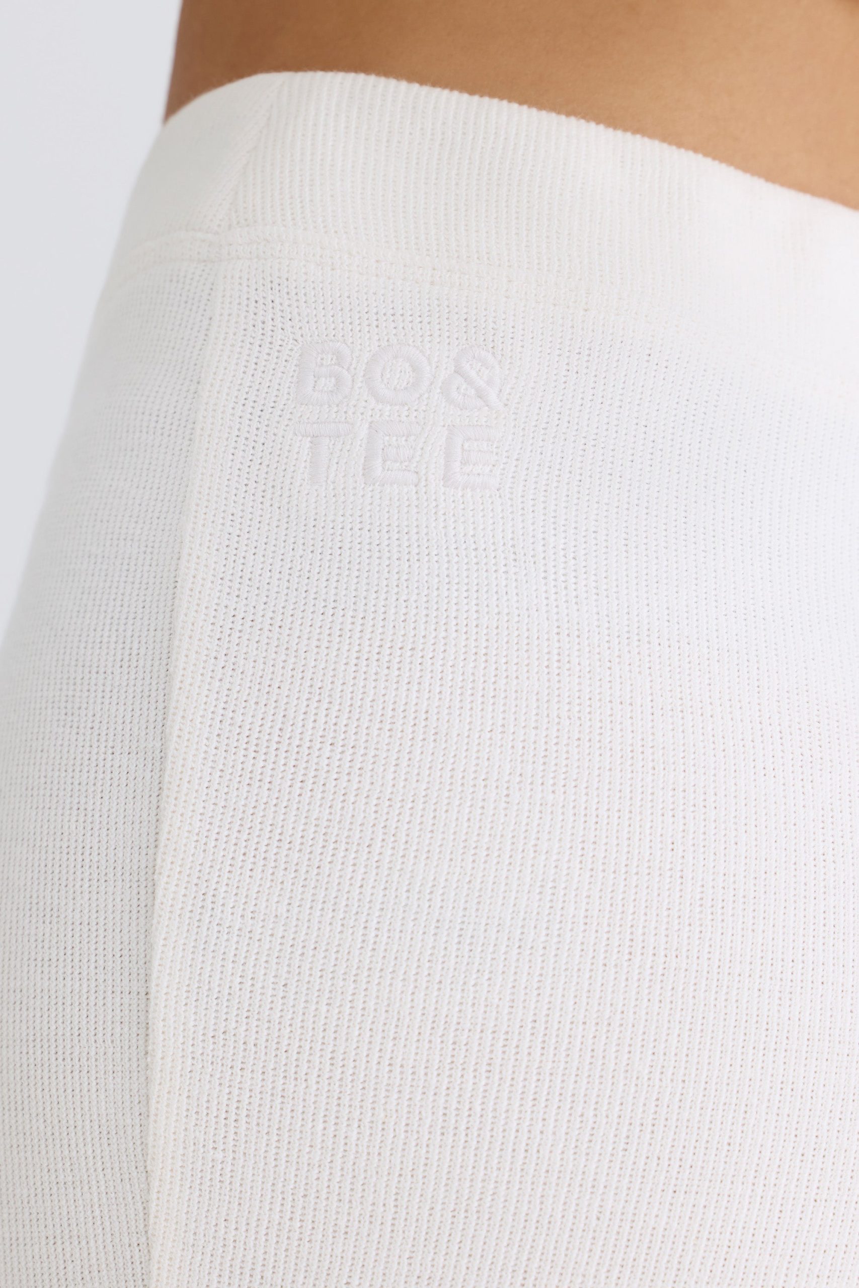 Summer staples. Perfect for styling at home or on holiday, these trousers are rendered in two classic neutral hues. They’re crafted from lightweight, textured cotton jersey with a touch of stretch and cut to a universally flattering flared silhouette. The V-shaped elasticated waistband creates a contoured look and the design is finished with a tonal embroidered Bo&Tee logo at the back.