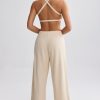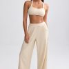 Petite Terry Towelling Wide-Leg Joggers in Cream