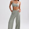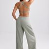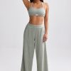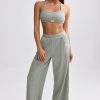 Petite Terry Towelling Wide-Leg Joggers in Sage Grey