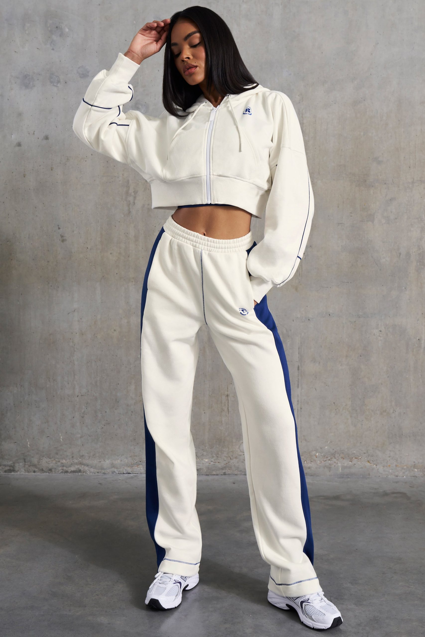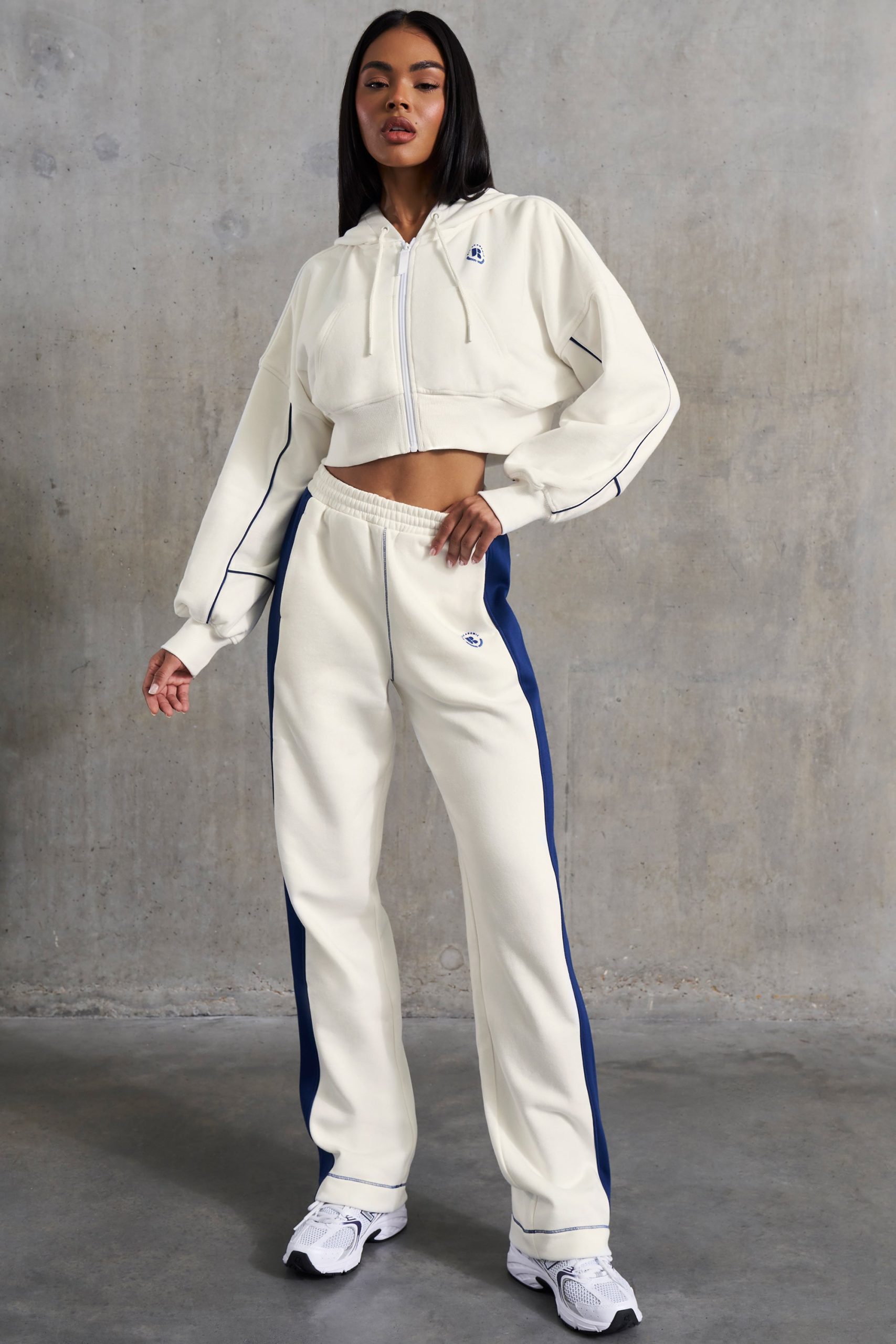 An academic-inspired athleisure style, the Elite wide leg sweatpants are crafted for ultimate comfort. Made from our premium 330gsm heavyweight, brushed cotton fabric that’s fleece lined for unbelievable comfort, the Elite sweatpants are a wide fit, straight leg design, complete with colour block side panelling and flocked branding at the thigh.