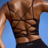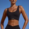 Plunge Neck Open Back FlexiRib Sports Bra in Black