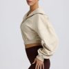 Your new wardrobe staple. Crafted from super-soft brushed cotton jersey with a cosy fleece lining for enhanced warmth and comfort, this cropped sweatshirt is cut with dropped shoulders and a wide ribbed collar that accentuates the relaxed fit. It’s complete with a non-restrictive, stretchy ribbed hem and signature appliqué Bo&Tee logo.