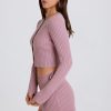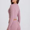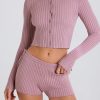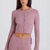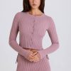Ribbed-Knit Button-Up Cardigan in Mauve