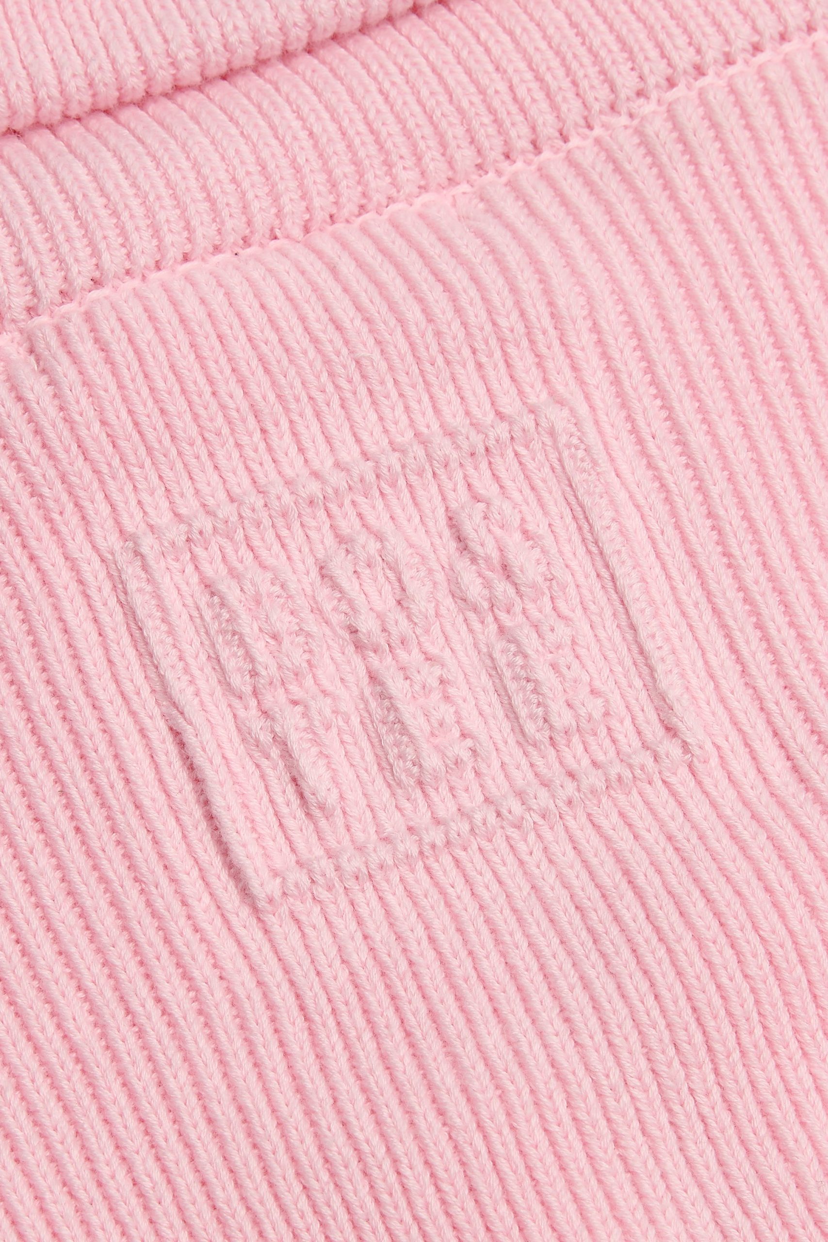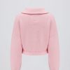 Ribbed-Knit Cropped Zip-Up Sweatshirt in Pale Pink