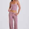 Slip into pure comfort with these joggers, crafted from a stretchy cotton blend with a soft ribbed-knit feel. Set on a mid-rise elasticated waistband, they feature an adjustable drawstring tie for your perfect fit and fall to a classic wide-leg silhouette.