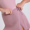 Cute and comfortable. Made from a lightly stretchy cotton blend with a soft, ribbed-knit texture, this skort features an elasticated mid-rise waistband. It features a wrapover design, built-in shorts for enhanced coverage, and adjustable ties on the sides for your perfect fit.