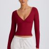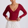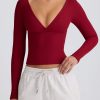Off-duty staples done right. Endlessly versatile and designed with all-day comfort in mind, this top is crafted from buttery soft and stretchy ribbed jersey fabric made with TENCEL™ Modal fibres that support a natural dry feeling through moisture control. It’s framed with a bust-flattering wrapover V-neck, long fitted sleeves and features internal silicone tape at each shoulder for a secure fit.