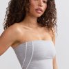 Sporty lines. Referencing classic sportswear styles, this bandeau top is elevated with contrast piping trims that create a dynamic and contoured look. Crafted from our signature Soft Active jersey fabric that’s lightweight, breathable and moisture-wicking, it’s cut to a bandeau silhouette with a built-in non-padded shelf bra for enhanced support and finished with an embossed Bo&Tee logo at the back.