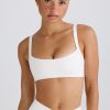 Soft Active Contrast-Trim Sports Bra in White