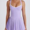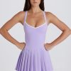 Silhouettes to serve in, from country club to coffee date. A classic style you’ll have on repeat, this tennis dress is crafted from our signature Soft Active fabric that’s breathable, lightweight and buttery to the touch. Designed with a fitted bodice, it features built-in shorts for enhanced coverage, a pleated skirt and fixed cross-back straps highlighted with contrast trims.