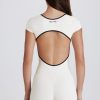 Rules of the game? Sporty silhouettes, luxe details. The perfect summer styling piece, this unitard is crafted from our lightweight, breathable and buttery Soft Active fabric to a second-skin silhouette framed with a universally flattering sweetheart neckline and contrasting trims that create a sculpting effect. It’s elevated with a cut-out at the back for a statement look.