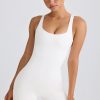 Effortless everyday dressing. The perfect summer styling piece, this unitard is crafted from our signature Soft Active fabric that boasts breathable and moisture-wicking properties. It’s cut to a sculpting bodycon silhouette with body contouring seam details and turns to reveal an open back with a single fixed strap that creates a sporty racerback-inspired look. It’s complete with a tonal Bo&Tee silicone logo at the back.