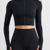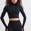 It’s all in the details. Meticulously designed in-house, this crop top is crafted from our signature Soft Active fabric that’s woven with stretch for a supportive, comfortable finish and cut to a turtleneck silhouette traced with a raw-cut edge. It’s framed with exposed seams and long fitted sleeves, complete with thumbholes for a secure fit.