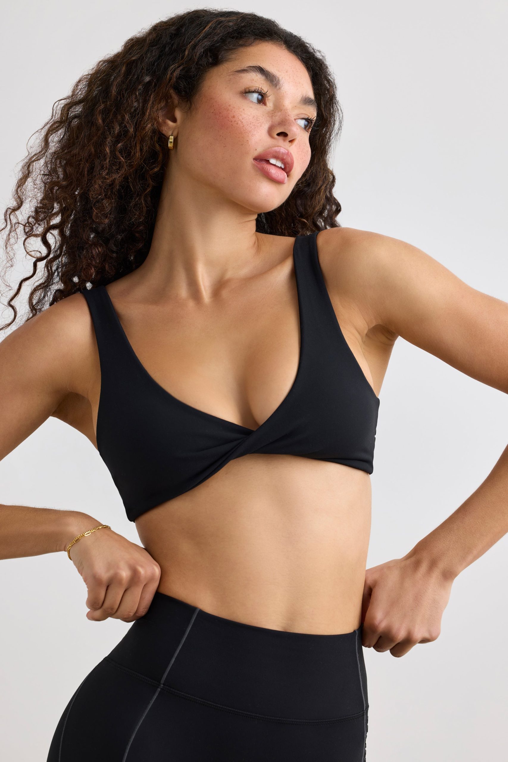 Meticulous details, big impact. Designed with low-impact workouts and off-duty days in mind, this sports bra is designed with removable cups for light bust support. It’s crafted from our signature stretch Soft Active fabric with a standout twisted neckline and slender crossover straps at the back.
