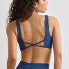 Meticulous details, big impact. Designed with low-impact workouts and off-duty days in mind, this sports bra is designed with removable cups for light bust support. It’s crafted from our signature stretch Soft Active fabric with a standout twisted neckline and slender crossover straps at the back.