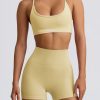 Locked in. Crafted from our new and improved Super Sculpt fabric that’s breathable, compressive and moisture-wicking for comfortable support through every set, this sports bra features a bust-flattering scoop neckline and non-restrictive elasticated underband. The slender crossover back straps provide low-impact support.