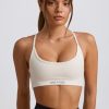 Locked in. Crafted from our new and improved Super Sculpt fabric that’s breathable, compressive and moisture-wicking for comfortable support through every set, this sports bra features a bust-flattering scoop neckline and non-restrictive elasticated underband. The slender crossover back straps provide low-impact support.