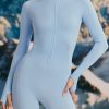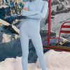Practical winter layers. Designed to contour your shape and layer perfectly under ski trousers and jackets from the collection, this base layer jumpsuit is crafted from our bestselling Super Sculpt fabric that’s stretchy, seamless and ultra-compressive for maximum support and comfort on the slopes. It’s complete with contouring ribbed panelling, a high mock neck and long sleeves with thumbholes.