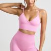 Streamlined support. Silky soft and engineered for performance, the Exclusive Define Luxe sports bra is crafted from our signature seamless knit fabric with moisture-wicking and breathable properties. It features adjustable straps for a custom fit and a micro-rib underband for enhanced support.