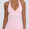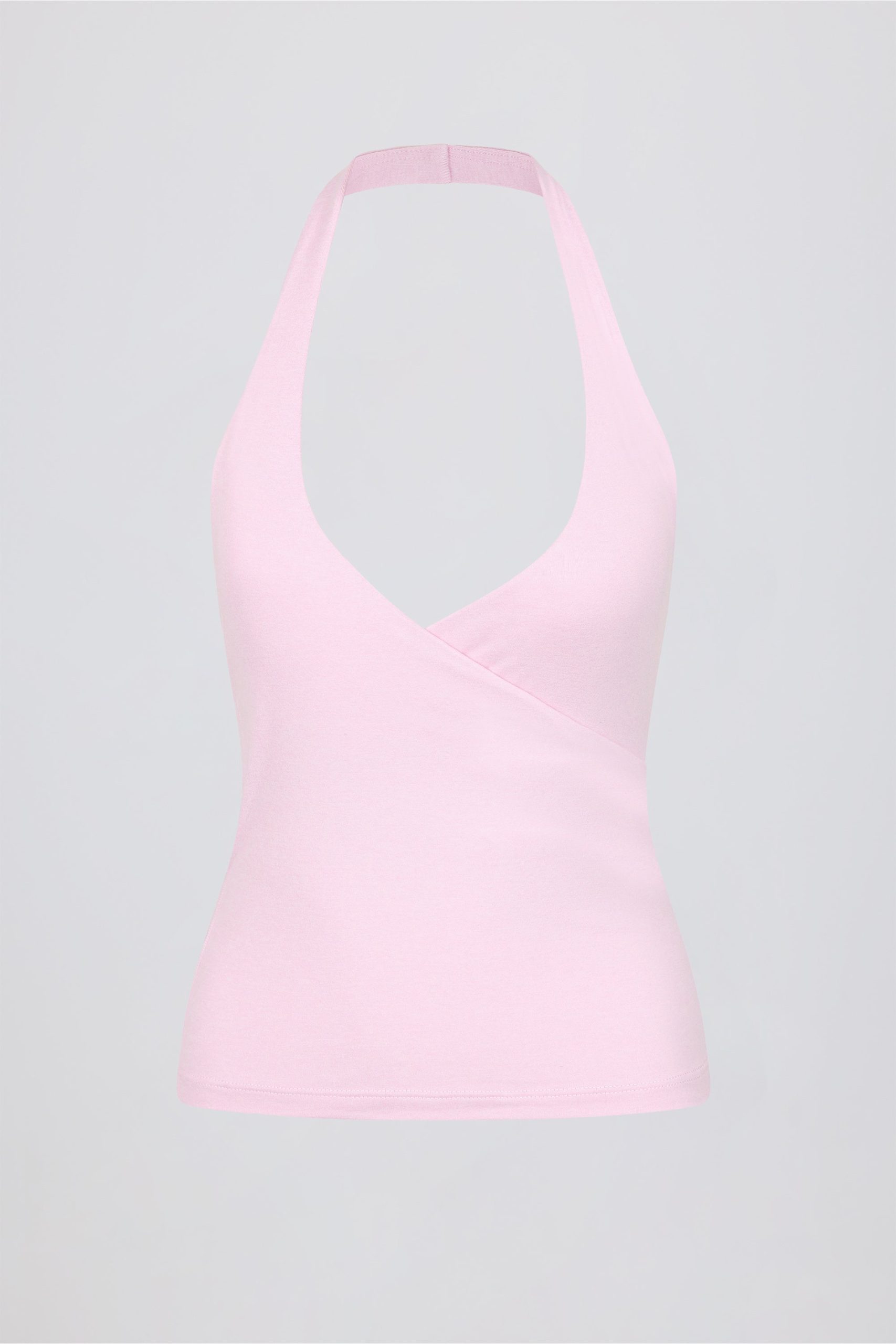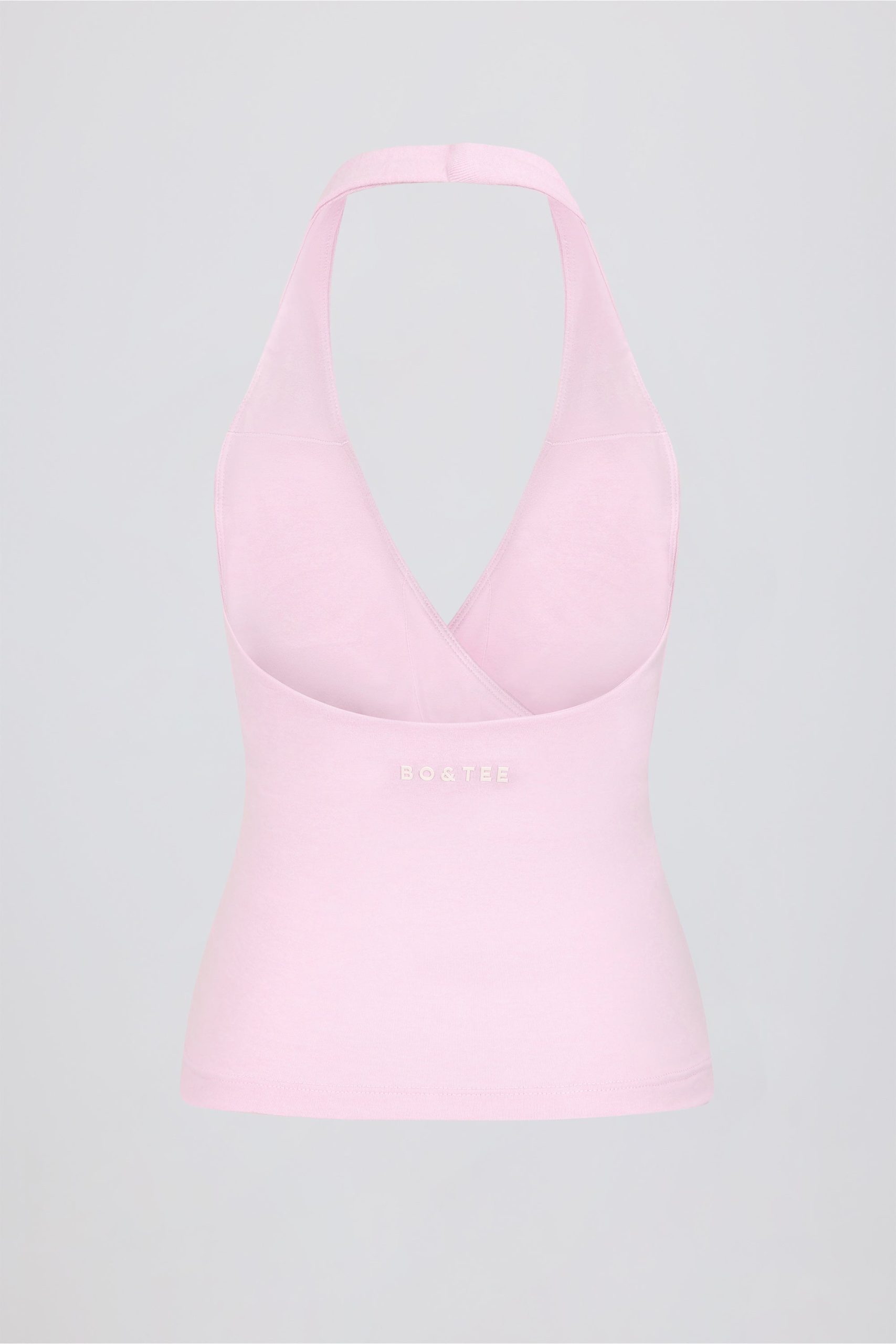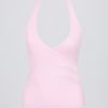 Wrap Halterneck Tank Top in Pale Pink Marl